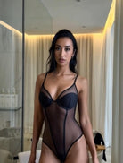 This black mesh bodysuit set made for teasing romance and to dare you to see your own captivating beauty. Give yourself more romance with yourself and your partner. These are our happiest moments and we need more of them. Designed to make you glow with love and allure. Choose beauty, choose yourself, experience as much happiness as possible. CLVS makes time for the pretty side of life. What you think of yourself is your state of mind!