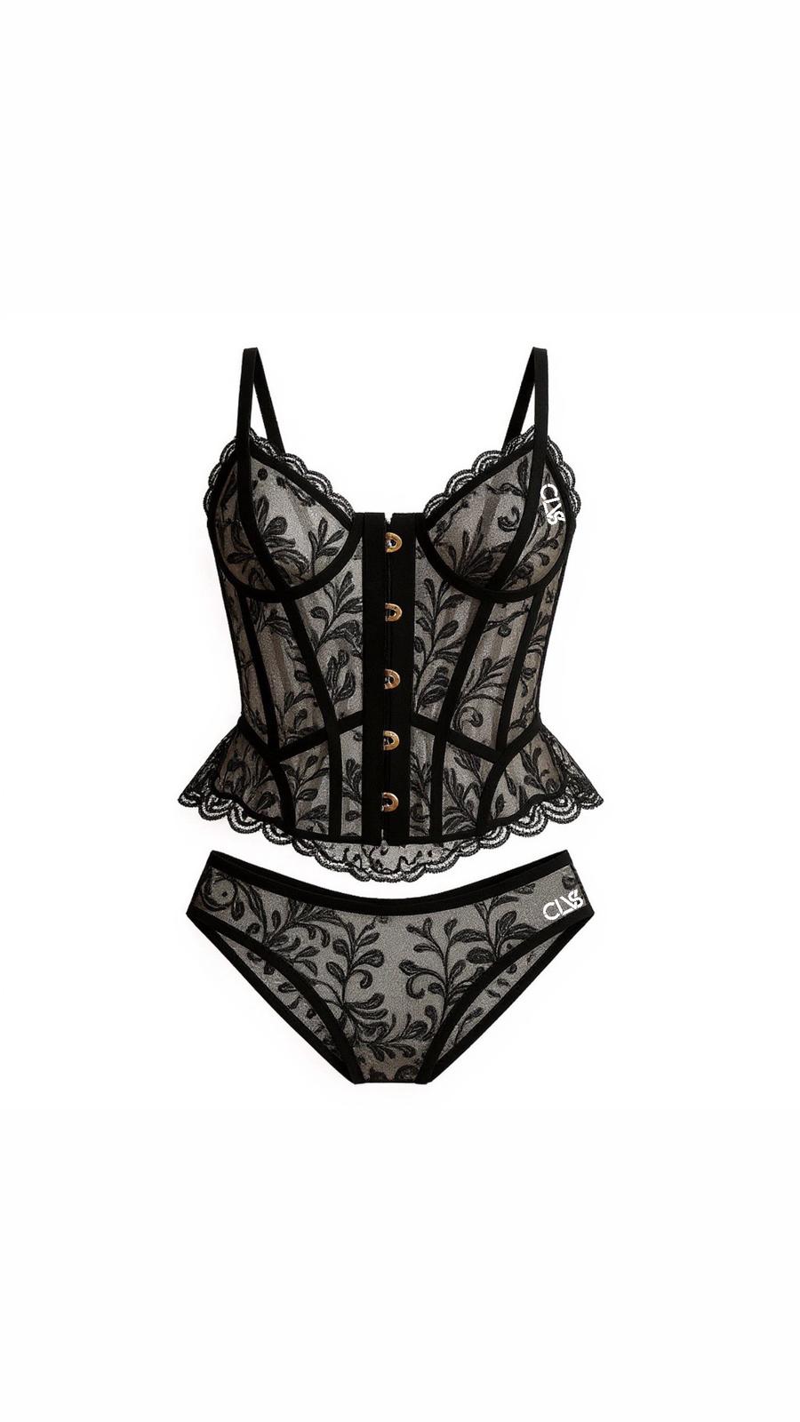 This lace corset set sculpts your silhouette with breathtaking allure. Give yourself more romance with yourself & your partner.