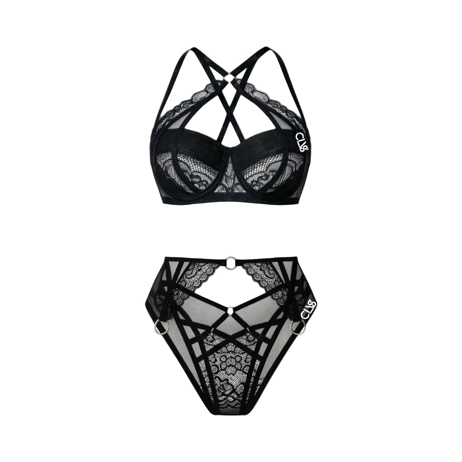 This black lace set cinches your silhouette in sultry, intricate romance, daring you to see your own irresistible beauty. Give yourself more romance with yourself and your partner. These are our happiest moments and we need more of them. It’s the pretty side of life! Designed to make you glow with love and confidence. Choose beauty, choose yourself!